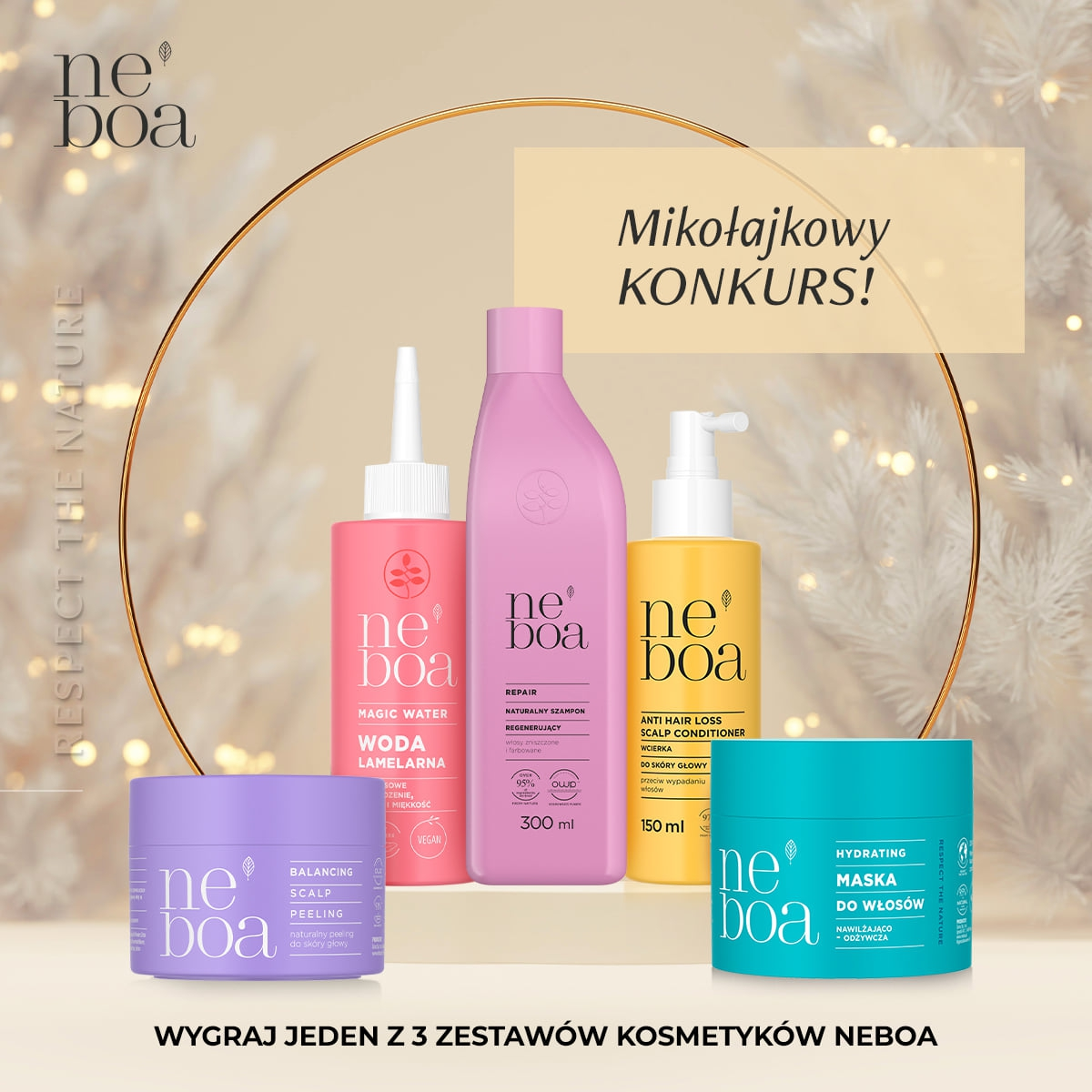 Aby wziąć udział w konkursie w komentarzu pod tym postem napisz - jakie są Twoje włosy i z jakiego kosmetycznego prezentu od Neboa ucieszyłabyś się najbardziej? 🎄