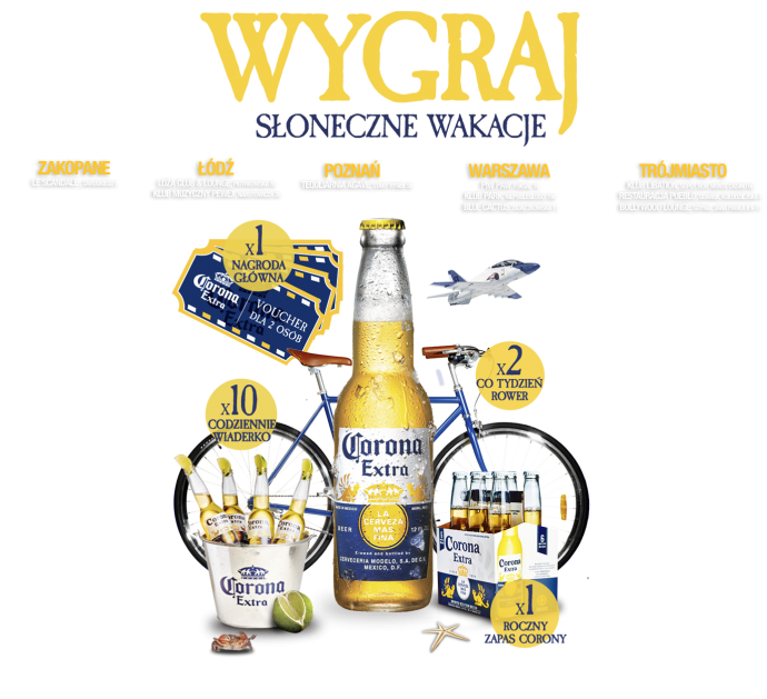 Uczestnikiem konkursu może zostać wyłącznie każda pełnoletnia osoba fizyczna z polskim obywatelstwem, która w okresie trwania konkursu kupi piwo Corona Extra i weźmie udział w Konkursie.