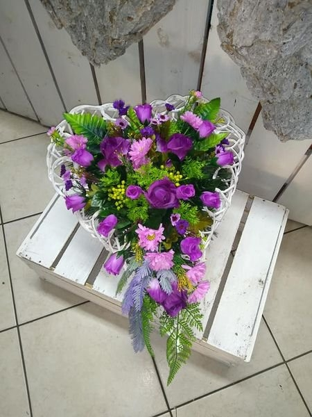 piękny stroik nagrobny, serce ażurowe w wybranej przez zwycięzce kolorystyce.
