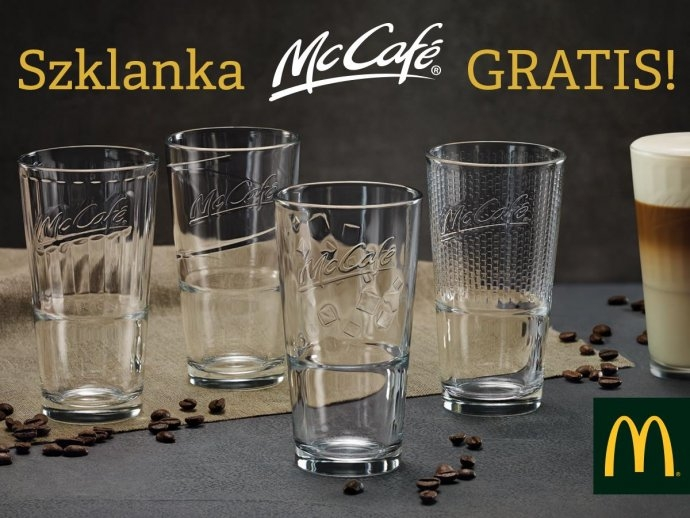 Warunkiem otrzymania szklanki Coca Cola za darmo jest zakup dowolnego powiększonego McZestaw Powiększonego, sałatki Kurczak Premium lub Chicken Boxa.