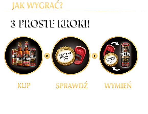 Kup butelkę lub puszkę specjal jp lub mocny 0,5l i sprawdź pod kapslem lub kluczykiem czy wygrałeś!