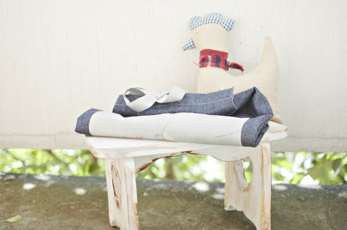 Jeansowy fartuch z kwiecistymi wstawkami od Blue and White