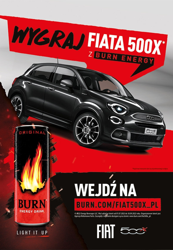 Kup dowolny, promocyjny napój Burn zawierający pod zawleczką kod.Zgłoś udział w loterii, wypełnij formularz na stronie http://burn.com./fiat_pl.