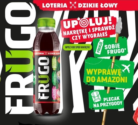- Nagrodą natychmiastową w loterii jest napój marki Frugo Czarne w butelce typu PET 500 ml o wartości 1,99 zł (50000 sztuk)