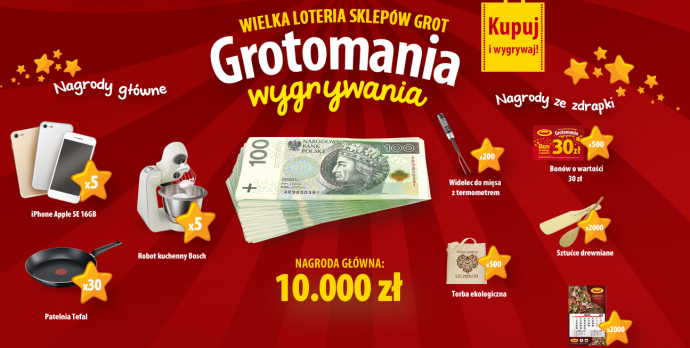 Loteria "Grotomania wygrywania. Kupuj i wygrywaj" sklepy GROT