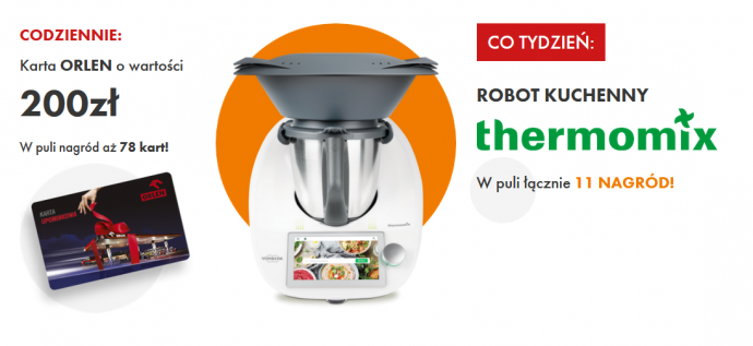 - codziennie: Karta ORLEN o wartości 200zł W puli nagród aż 78 kart!