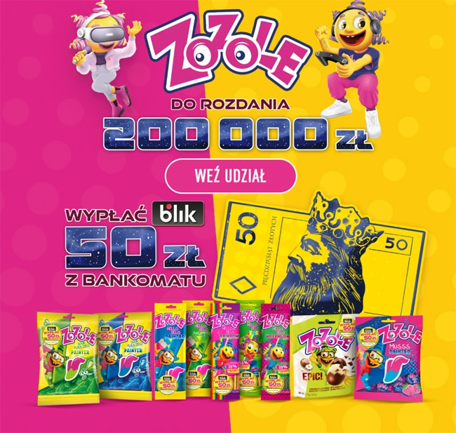 4000 czeków Blik w wysokości 50 zł do wypłaty z bankomatu.