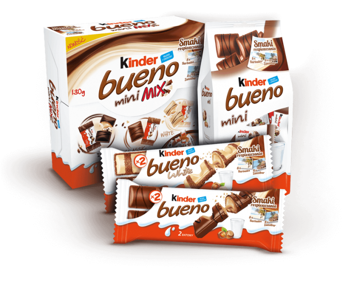 - Kup promocyjne opakowanie Kinder Bueno, Kinder Bueno White, Kinder Bueno Mini lub Kinder Bueno Mini Mix.