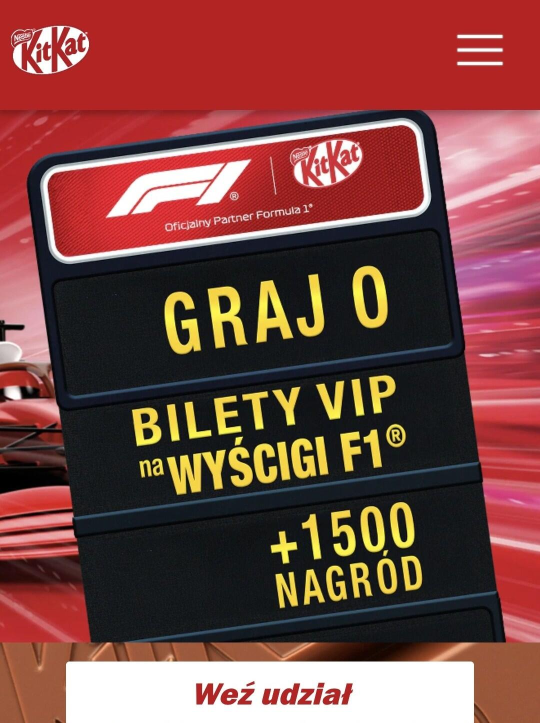 - Zarejestruj paragon na stronie loterii i od razu sprawdź, czy wygrałeś gadżety KitKat z logo F1