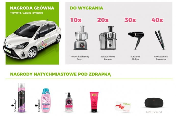 Należy zrobić zakupy za minimum 35 zł i odebrać zdrapkę.Warunkiem wzięcia udziału jest posiadanie karty klubu Natura