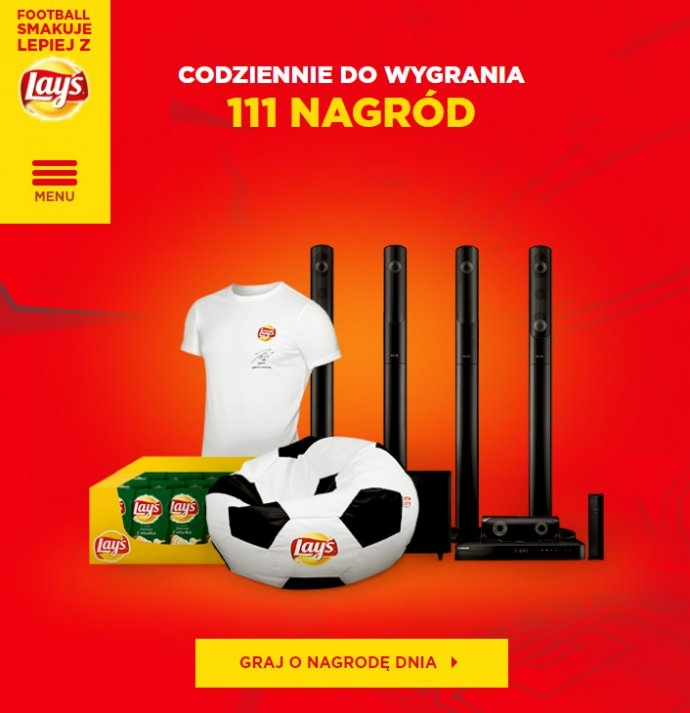 - 10 zestawów kibica: pufa piłka oraz zapas Lay's