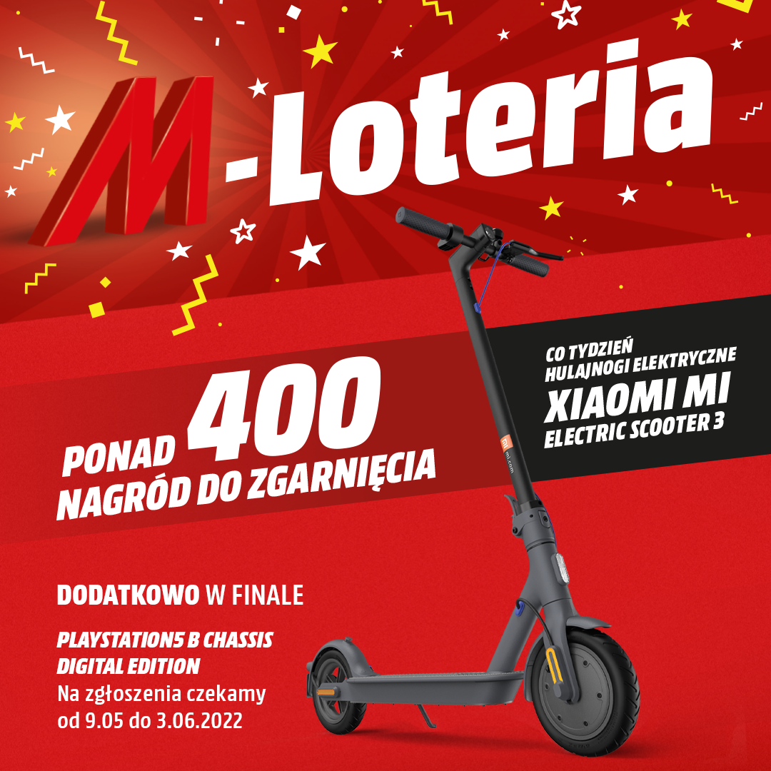 - Nagroda Tygodniowa w postaci hulajnogi elektrycznej XIAOMI Mi ELECTRIC SCOOTER 3 o wartości 2.199,00 zł brutto – łącznie 324 nagrody o wartości 712.476,00 zł brutto