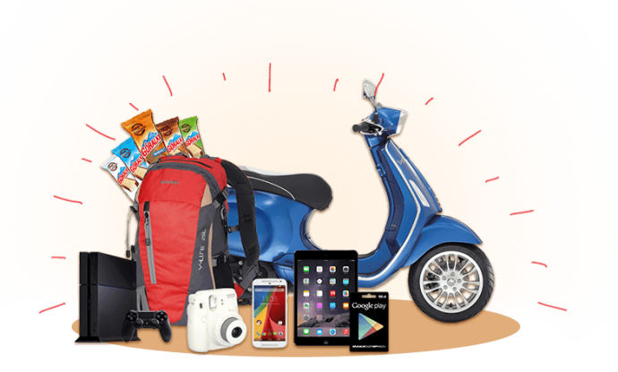 1x zestaw nagród (skuter VESPA + aparat fotograficzny Fuji Instax Mini 8 + plecak turystyczny + trzy kartony wafelków marki „Góralki“, karton zawiera 36 wafelków)