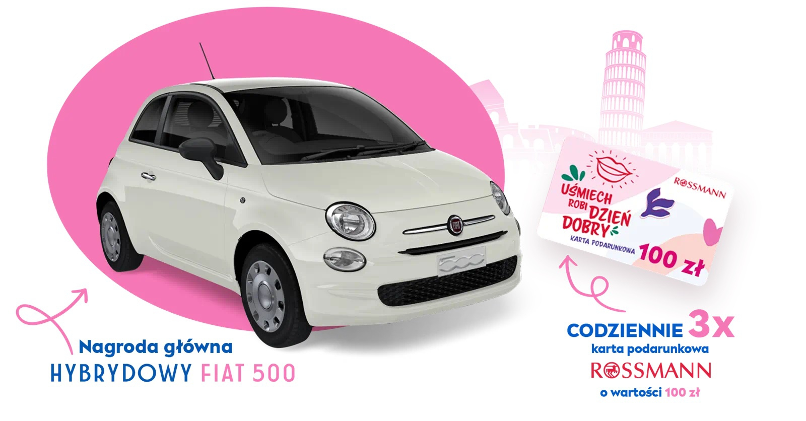 - Nagroda główna w postaci samochodu osobowego FIAT 500 1.0 70 KM Hybrid
