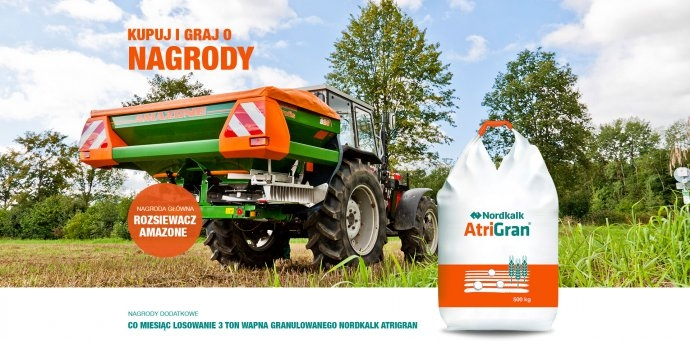- Nagroda I stopnia w postaci vouchera na 3 tony wapna granulowanego Atrigran wraz z transportem o maksymalnej wartości 3.256,20 zł brutto wraz z dodatkową nagrodą pieniężną w wysokości 362 zł (dodatkowa nagroda pieniężna przypisana zostanie do nagrody I stopnia tylko w przypadku, gdy laureatem nagrody I stopnia zostanie osoba fizyczna. Dodatkowa nagroda pieniężna przeznaczona zostanie na zapłatę podatku dochodowego od wygranej w Loterii przez Organizatora. Uczestnik będący osobą fizyczną wyraża zgodę na potrącenie kwoty podatku dochodowego z wygranej nagrody I stopnia. W przypadku wygrania nagrody I stopnia przez Podmiot Gospodarczy, dodatkowa nagroda pieniężna nie jest przypisana do nagrody I stopnia) – łącznie 8 nagród o maksymalnej wartości 28.945,60 zł.