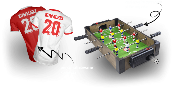 - 600x personalizowana koszulka kibica (z hasłem i numerem na plecach) o wartości 51,40 zł (słownie: pięćdziesiąt jeden 40/100 złotych) brutto.