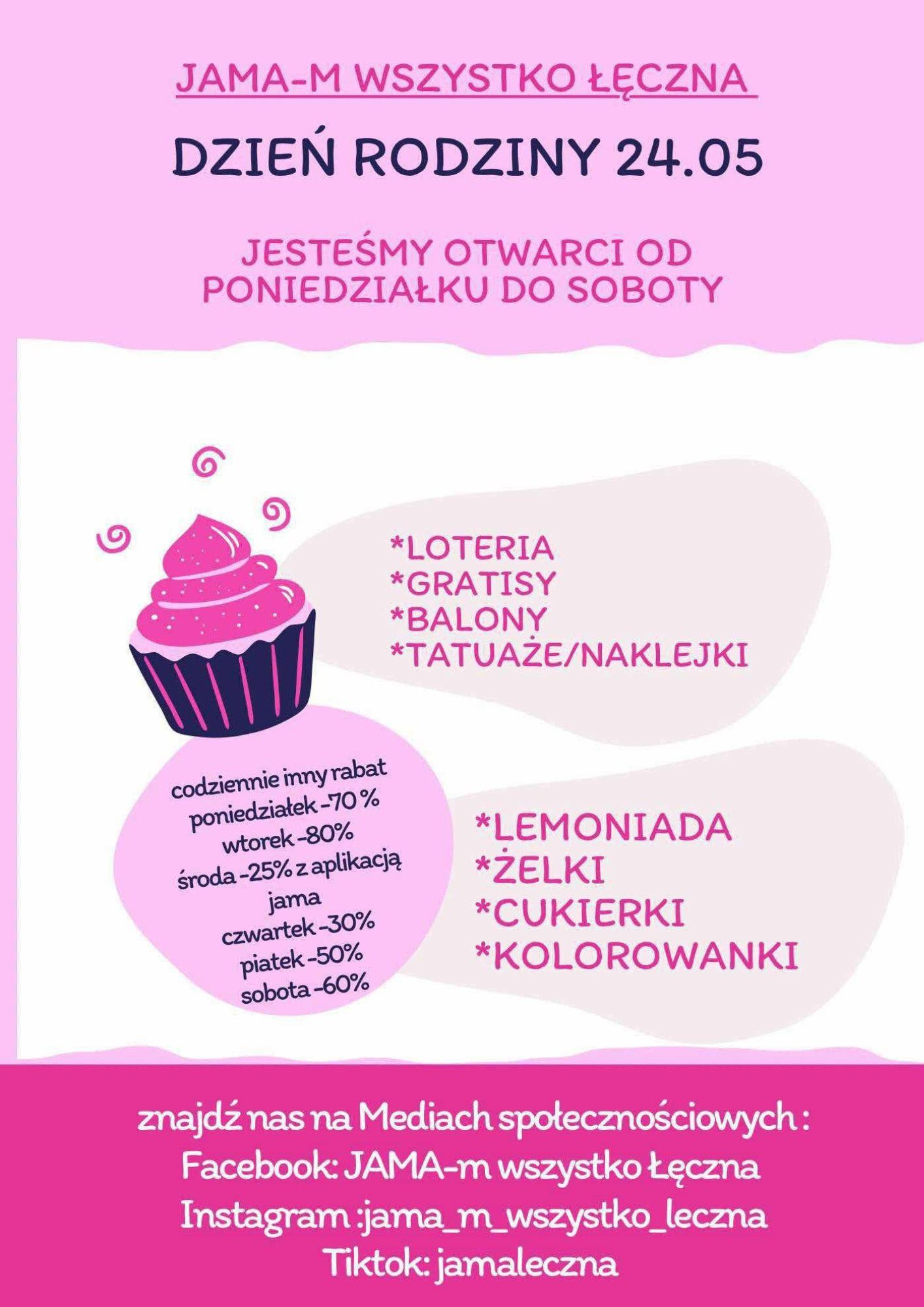 Zrób zakupy za min. 50zł w sklepie JAMA-m Łęczna, a otrzymasz los na loterię. Zwycięzcy zostaną wyłonieni dniu 26.05.2025 poprzez losowanie losu