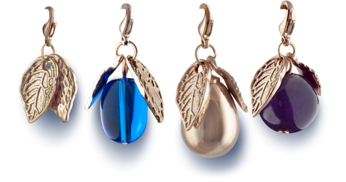 - 1525 sztuk charmsów w postaci śliwki z kamienia naturalnego z pozłacanymi listkami.