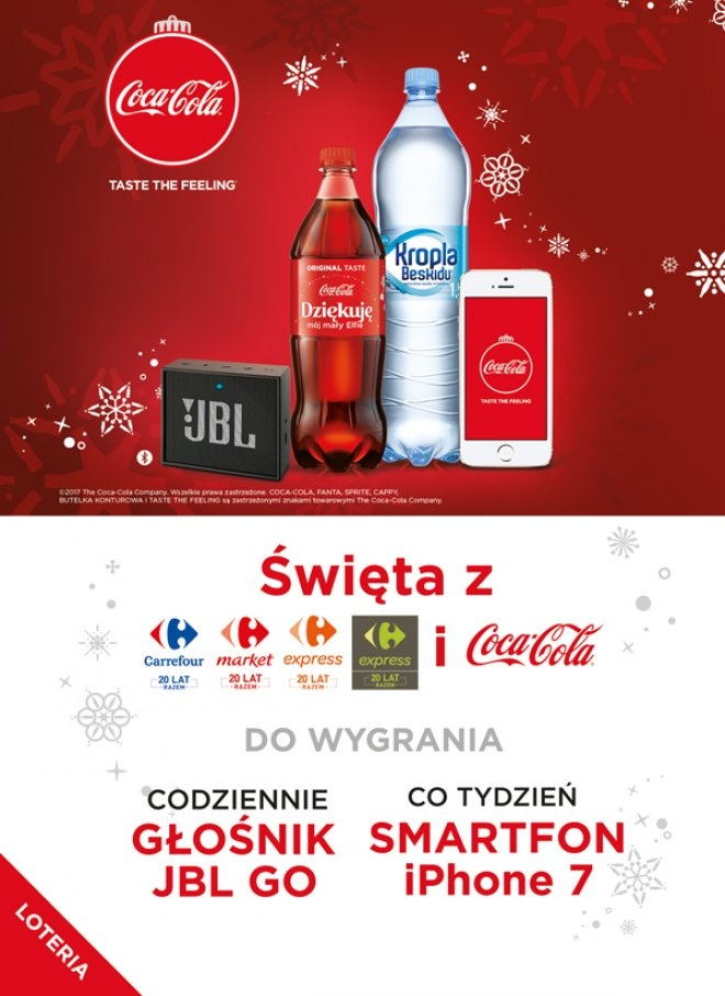 Kup dwa dowolne produkty Coca-Cola, zgłoś udział w loterii sms lub przez rinternetową.