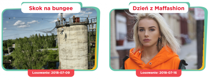 - Nagrody typu „INFLU”, tj.: uczestnik w programie Abstrachuje; uczestnictwo w usłudze dzień z Maffashion; jazda Monstertruckiem z udziałem Reziego; usługa Escape Room z udziałem Blowka; skok na bungee, wraz z zakwaterowaniem i dojazdem.