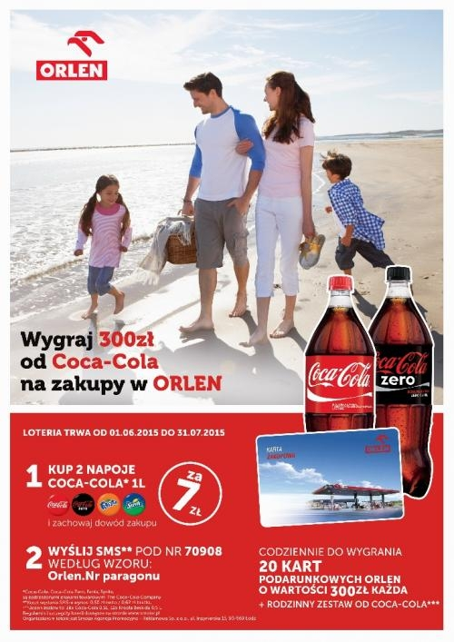 Codziennie do wygrania jest 20 kart podarunkowych Orlen o wartości 300 zł wraz z rodzinnym zestawem od Coca Cola.