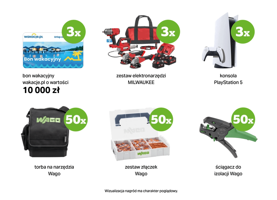 W loterii biorą udział opakowania złączek instalacyjnych marki Wago z serii 221-412, 221-413, 221-415, 221-612, 221-613, 221-615, 221-2411, 2273-202, 2273-203, 2273-204, 2273-205, 2773-2401, 224-112, 224-101.