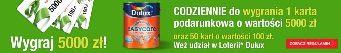03.11.2017 16:36:56Zakup promocyjny– każdy jednorazowy zakup co najmniej 2,5 l dowolnej kolorowej farby marki Dulux.