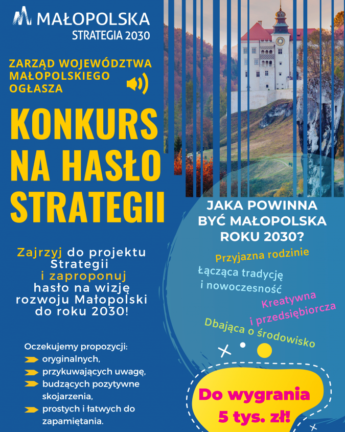 Małopolska: Konkurs na hasło strategii Rozwoju Województwa "Małopolska 2030"
