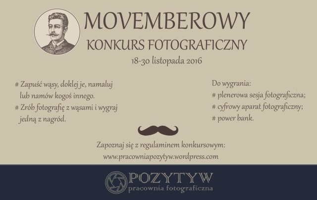 Zadaniem uczestników konkursu jest wykonanie oryginalnej fotografii człowieka z wąsami. Konwencja zdjęcia, technika jego wykonania oraz płeć fotografowanej osoby są dowolne, zaś wąsy mogą być zarówno naturalne, jak sztuczne, np. doklejone, czy domalowane. Każdy uczestnik może zgłosić TYLKO JEDNĄ FOTOGRAFIĘ poprzez wysłanie jej e-mailem na adres organizatora. Zdjęcia można wysyłać od 18 do 30 listopada 2016 r., a rozstrzygnięcie konkursu nastąpi do 10 grudnia 2016 r.