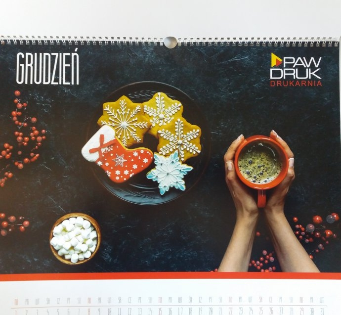 kalendarz do powieszenia na ścianę o wymiarach 47x47 cm zaprojektowany w pracowni graficznej laserduk.pl wydrukowany w drukarni PAW DRUK