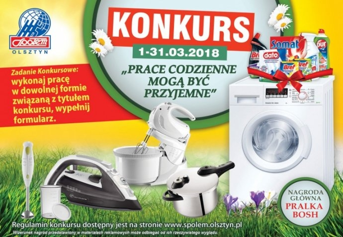 - prace konkursowe należy wysłać na adres : Dział Handlu i Marketingu Społem PSS w Olsztynie, ul.Towarowa 3 blok B, 10-416 Olsztyn z dopiskiem „Konkurs”, mailowo na adres : konkurs@spolem.olsztyn.pl lub wrzucić do urny w sklepie.