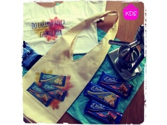 3x zestaw: zestaw czekolad Chrrrup, wyciskarka do cytrusów, modna torba na zakupy, T-shirt i kolorowy proszek Holi