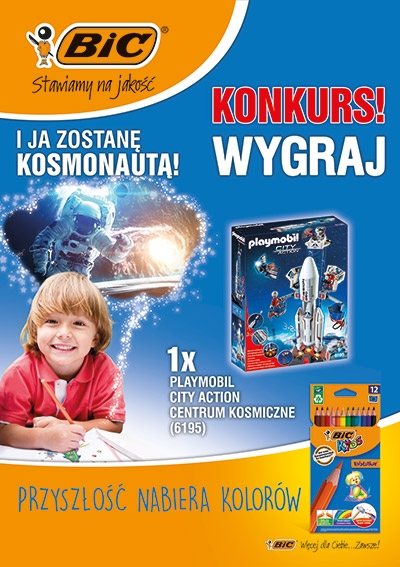 Kup dowolny produkt piśmienniczy lub plastyczny BIC w sklepie Leclerc, ul. 11 Listopada 6, Ostrowiec Świętokrzyski, zrób zdjęcie pokazujące marzenia Twojego dziecka o jego przyszłym zawodzie i zgłoś się do konkursu do 20.05.2018 r.