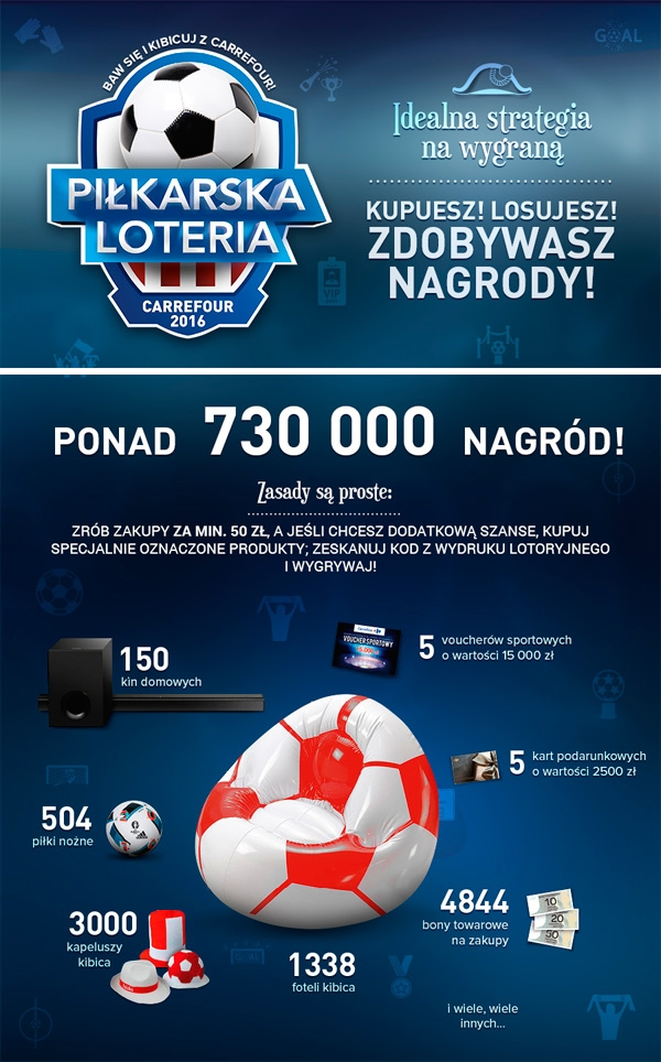 Zrób w Carrefour dowolne zakupy za minimum 50 zł, a jeśli chcesz dodatkową szansę, kupuj specjalnie oznaczone produkty