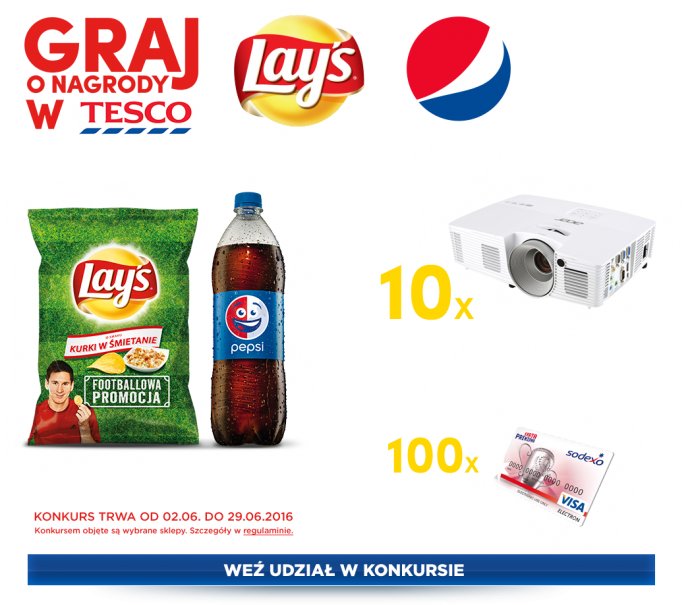 Aby wziąć udział w Konkursie należy dokonać jednorazowego łącznego zakupu co najmniej jednego Produktu Promocyjnego Frito Lay oraz co najmniej jednego Produktu Promocyjnego Pepsi w sklepie sieci Tesco i zachować dowód zakupu. Po dokonaniu zakupu dokonać zgłoszenia do Konkursu poprzez wypełnienie formularza zgłoszeniowego zamieszczonego na stronie internetowej pilkarskikonkurs.pl.