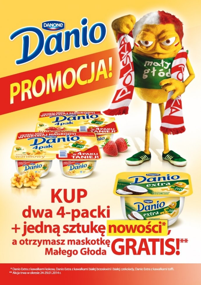 Aby wziąć udział w promocji, należy kupić dwa 4-paki Danio + 1 sztukę nowości, do których należą: