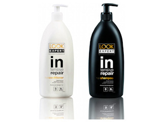 Zestawy LOOK EXPERT Intensive Repair. W skład zestawu wchodzi szampon i odżywka.