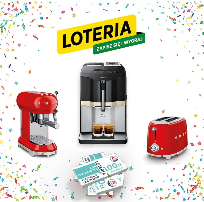 Spróbuj szczęścia i zawalcz o nagrodę dla siebie lub swoich bliskich! Do wygrania sprzęt kuchenny, który przyda się w każdym domu, czyli ekspresy do kawy i tostery lub bony zakupowe. Udział w loterii organizowanej przez wybrane Centra Handlowe Auchan jest prosty i nie wymaga robienia zakupów ani kupowania losów. Wystarczy od 30 marca do 14 kwietnia zapisać się do promocyjnej listy klientów – osoby obecne na liście są na bieżąco informowane o nadchodzących wydarzeniach, specjalnych akcjach i atrakcyjnych bonusach.