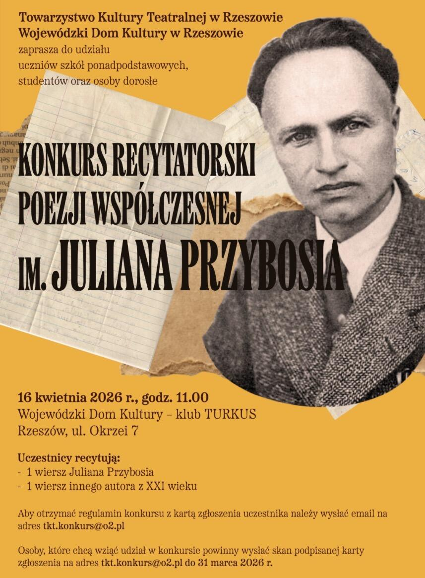 Rzeszów: Konkurs "Recytatorski Poezji Współczesnej im. Juliana Przybosia"