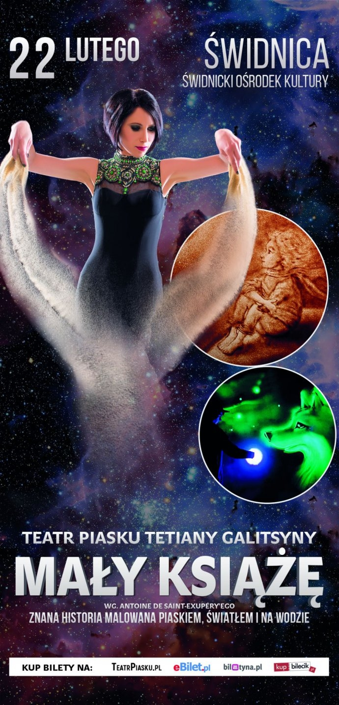 trzy podwójne zaproszenia na widowisko Teatru Piasku Tetiany Galitsyny w Świdnicy