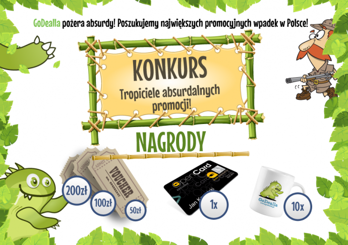 GoDealla pożera absurdy! Widziałeś promocję, która wcale promocją nie jest, zabawny błąd na promocyjnej etykiecie, cenę obniżoną o grosz? Zrób zdjęcie lub print screen i podziel się z nami! Autorzy najbardziej popularnych absurdów zgarniają nagrody!