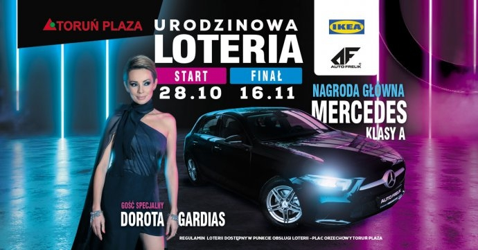 Zrób zakupy na terenie CH Toruń Plaza w placówkach handlowych biorących udział w loterii za min. 50 zł na 1 dowodzie zakupu i odbierz kupon. Przy wielokrotności kwoty 50 zł na 1 dowodzie zakupu przysługuje Ci max.5 kuponów.