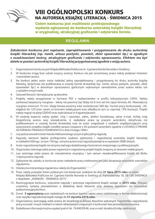 VIII Ogólnopolski Konkurs na Autorską Książkę Literacką - Świdnica 2015 - do 31 lipca 2015