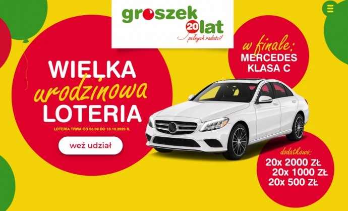 Zrób zakupy w Groszku za minimum 15 zł w tym min. 1 produkt partnera i weź udział w loterii wypełniając formularz zgłoszeniowy.