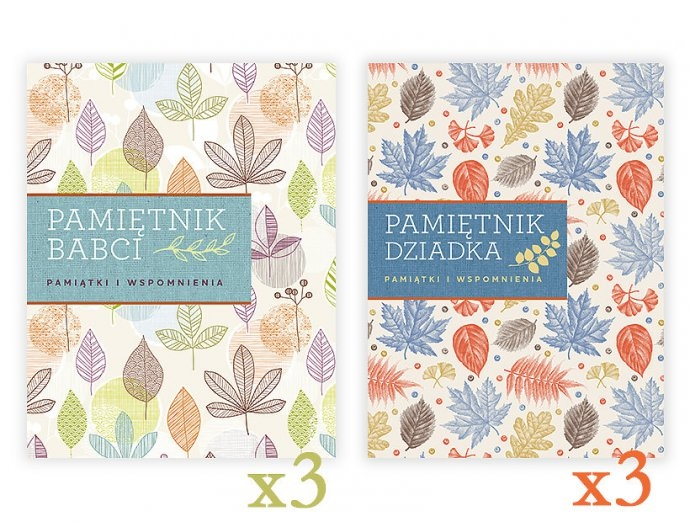 6 Pamiętników (3x babci, 3x dziadka) do kolekcjonowania wspomnień.