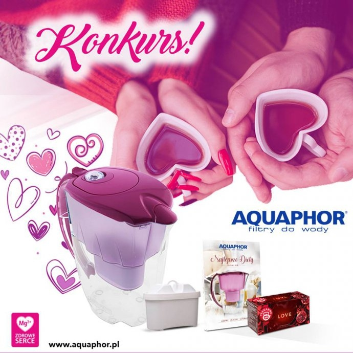 Dwa zestawy zawierające dzbanek filtrujący AQUAPHORE, książeczkę „Najlepsze diety na cały rok” i herbatę TEEKANNE LOVE.