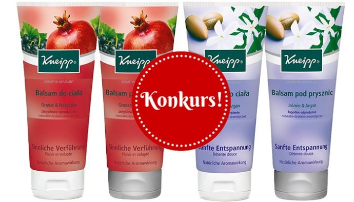 12.04.2016 12:14:06Spośród poprawnych odpowiedzi wybierzemy 40 (Granat i Porzeczka) i 160 (Jaśmin i Argan), które nagrodzimy zestawami balsamów Kneipp.