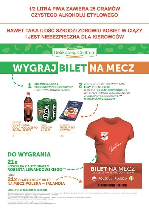 30 lipca 2015 r. w Delikatesach Centrum startuje loteria pod hasłem "Wygraj bilet na mecz". Aby wziąć w niej udział, wystarczy kupić minimum dwa spośród trzech produktów promocyjnych i wysłać SMS pod numer 70908 o treści według wzoru: BILET.numer paragonu lub wypełnić formularz zgłoszeniowy na stronie pilkawgrze.com.