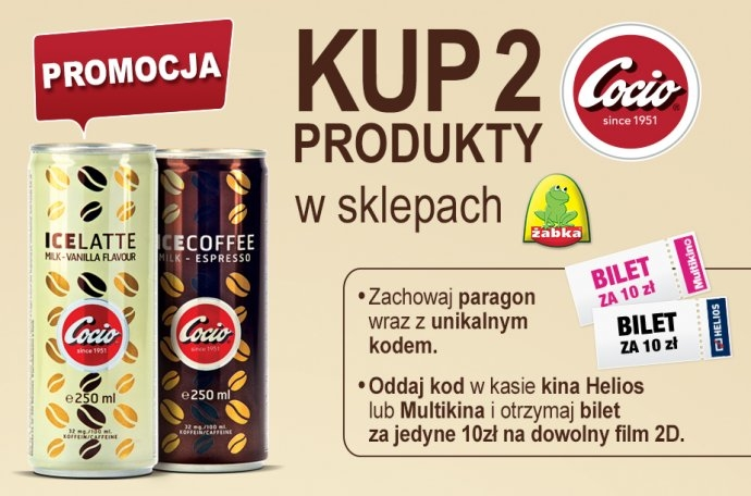 Oddaj kod w kasie kina Helios lub Multikina i otrzymaj bilet za jedyne 10 zł na dowolny film 2D.