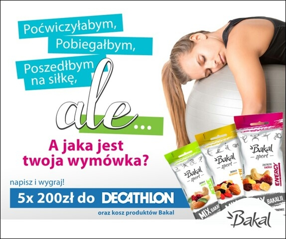 - 5x bon o wartości 200zł do sklepów Decathlon oraz kosz produktów Bakal